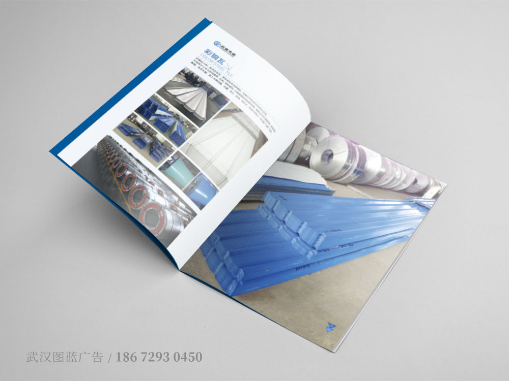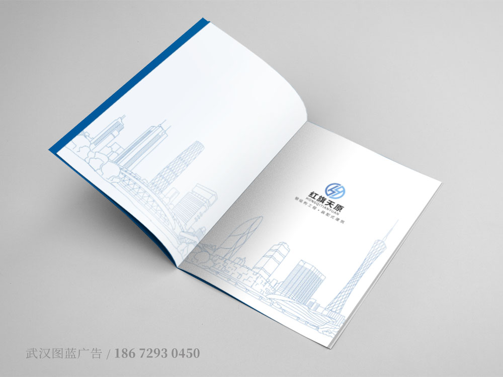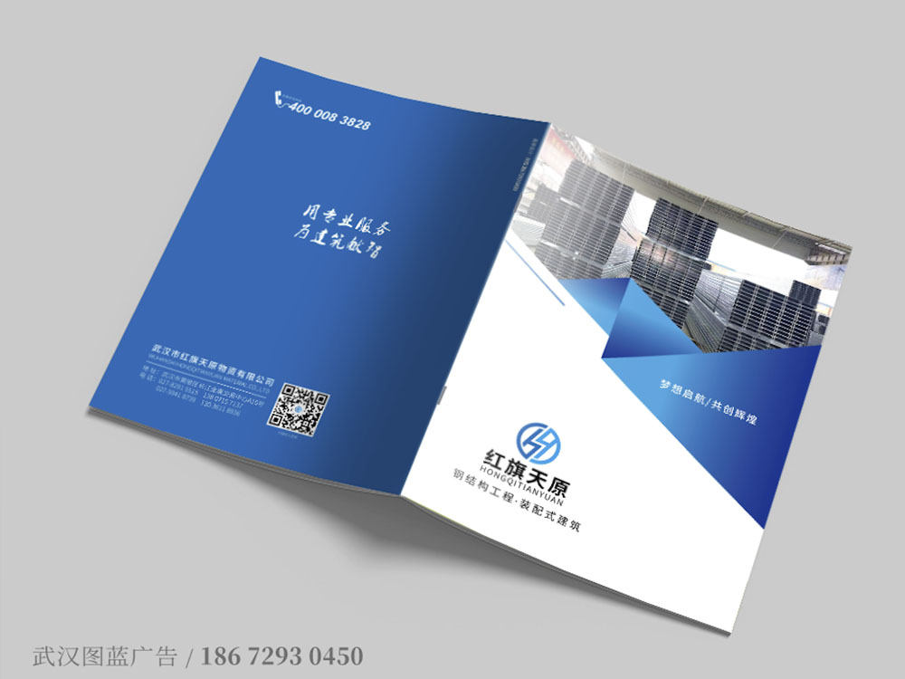 画册封面以公司主要产品钢材图片为设计元素,通过不同大小的蓝色渐变方块切割,让整个画册封面的设计更加具有层次感,通过画册封面左下角LOGO简称与右上角的设计元素相呼应,让封面的设计视觉感达到平衡。画册的内页延续了封面的设计风格,以蓝色为主色调,从公司简介、主营产品和成功案例三大版块依次展开介绍,将“红旗天原公司”形象生动地展现给客户。