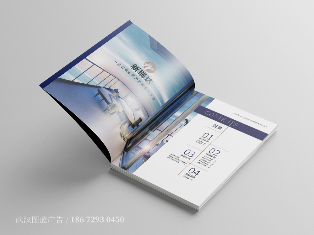 画册封面以公司LOGO为主要设计元素,将LOGO图形设计成等高线的线条,在兼具立体感的同时又极显艺术感,LOGO简称与公司经营业务文字置于画册封面右上角,不仅主题突出,而且设计简洁。深蓝与暗金的色系搭配,让整本画册更加突显高端大气。画册内页的设计延续了封面的设计风格,从工厂介绍和主要产品分别展开,合理的图文穿插设计,让整本画册的设计饱满且详细。让客户通过一本画册充分了解“新瑞达公司”的经营产品与公司实力。