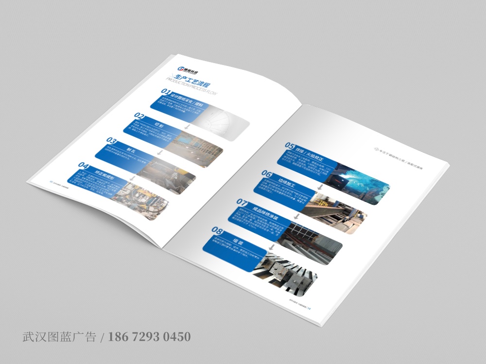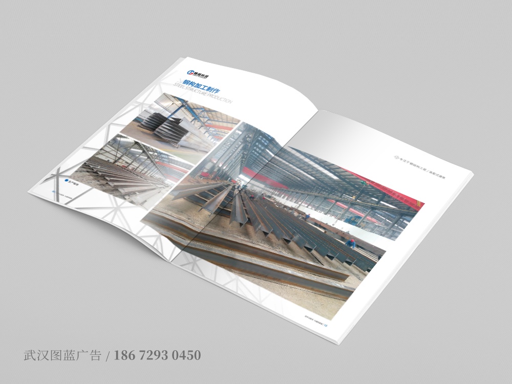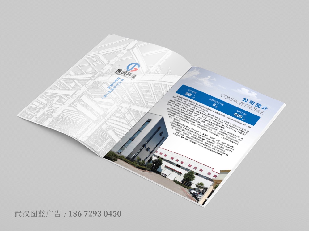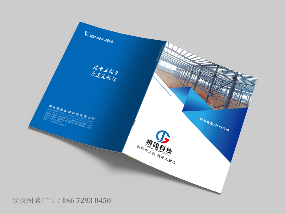画册封面以公司主营业务钢构图片为设计元素,通过不同大小的蓝色渐变方块切割,让整个画册封面的设计更加具有层次感,通过画册封面左下角LOGO简称与右上角的设计元素相呼应,让封面的设计视觉感达到平衡。画册的内页延续了封面的设计风格,以蓝色为主色调,从公司简介、主营产品和成功案例三大版块依次展开介绍,将“精固智装公司”形象生动地展现给客户。